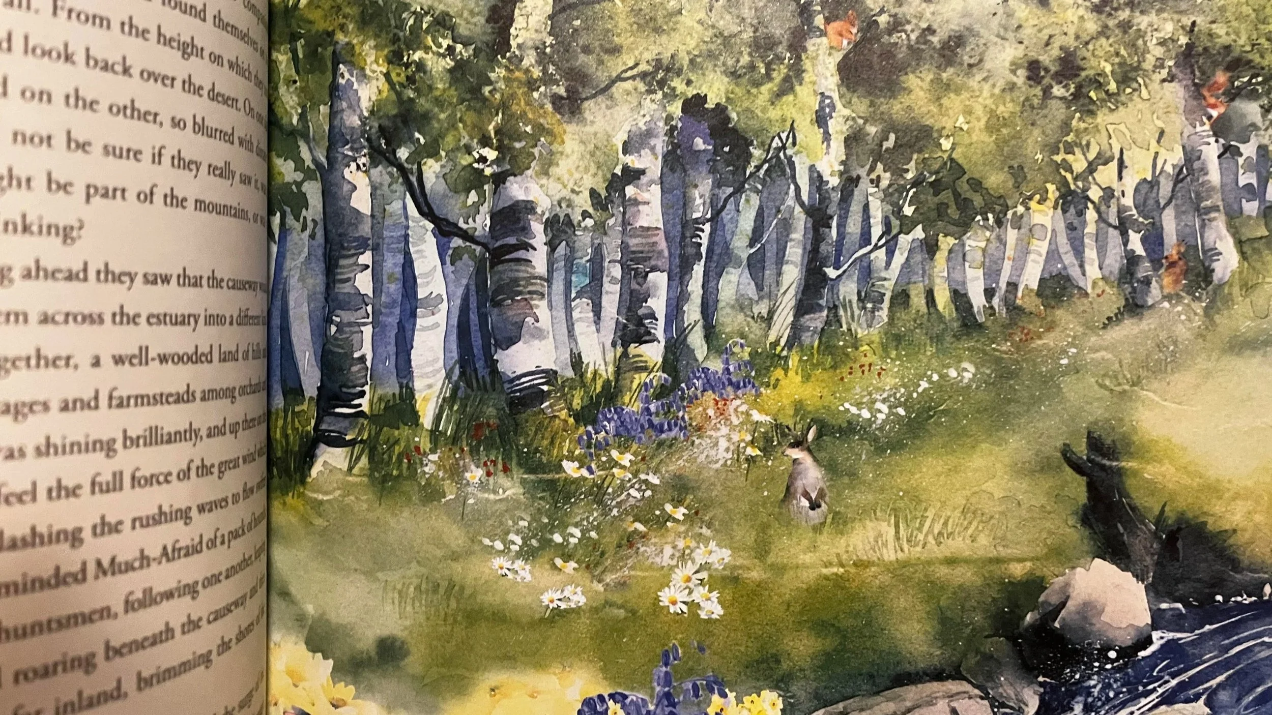 “Much-Afraid told herself that never before had she realized what the awakening from the death of winter was like. Perhaps it had needed the desert wastes to open her eyes to all this beauty, but she walked through the wood, almost forgetting for a little that Sorrow and her sister also walked with her. Everywhere she looked it seemed that the unfurling green on the trees and the nesting squirrels and blossoming flowers were all saying the same thing, greeting one another in their own special language with a sort of ecstasy and calling cheerfully, ‘You see, the winter has gone at last. The delay was not unto death but for the glory of God. Never was there a fairer spring than this.’” (p. 49)