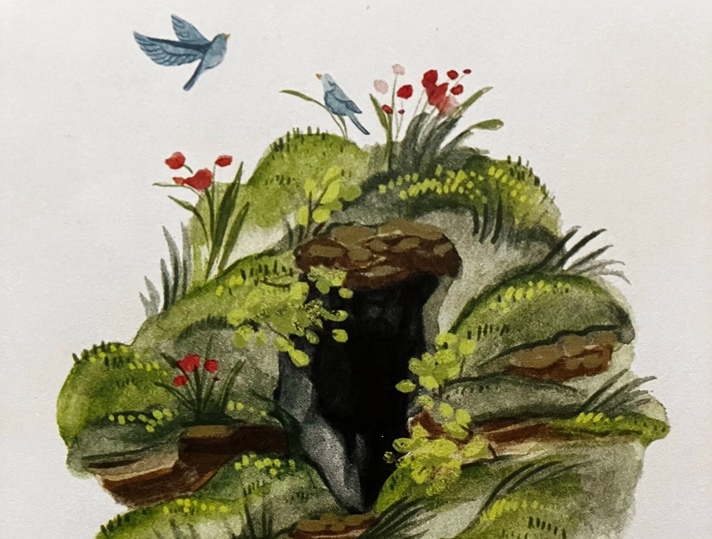 This week we're in chapter 17 of Hinds Feet on High Places. We ended off last week with Much-Afraid had bringing the offering to the stone altar at the edge of the high places and then falling asleep. She wakes up at the beginning of this chapter in a cave and covered in cloth and sweet smelling spices. These are the things that a body would be buried with. But she is awake, so she walks out and she's by herself for the first time in the book. Sorrow and Suffering are not near. The Great Shepherd is not there. No enemies to be seen or heard from. And it's just her and the birds singing in this peaceful setting; the sun is shining, there's flowers everywhere. Then she sees the stone altar that the priest had bound her on when she gave her offering and as she looks around, she sees a stream coming out from under the altar. It continues and gets bigger and then goes out over a cliff. She realizes that's where the mighty falls come from. They begin under that altar where she made her offering.